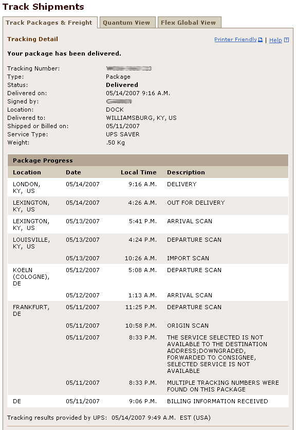 Some hours later we tracked the letter and saw problems. It was downgraded by UPS as Express Plus is not available to that location.