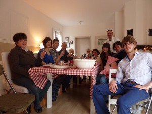 Am 04.02. 2012 waren wir zum Bat Mitzvah von Sara, der Tochter unserer Freunde Deborah und Will eingeladen. Das ist in etwa so wie Konfirmation nur mit mehr Alkohol .. Das Bild hier war ca. in der Mitte der Veranstaltung als die Herren noch stehen konnten …