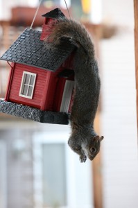 Der war aber gar nicht eingeladen .. nach 4 Wochen haben die Voegel endlich den Weg ins Vogelhaus gefunden und dann kam gleich dieser ungebetene Gast. Aber niedlich ist er!